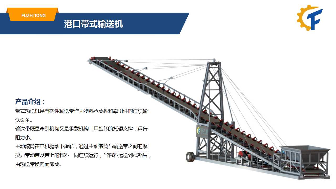 產(chǎn)品介紹:帶式輸送機是有撓性輸送帶作為物料承載件和牽引件的連續(xù)輸送設備。輸送帶既是牽引機構又是承載機構,用旋轉的托輥支撐,運行阻力小。
